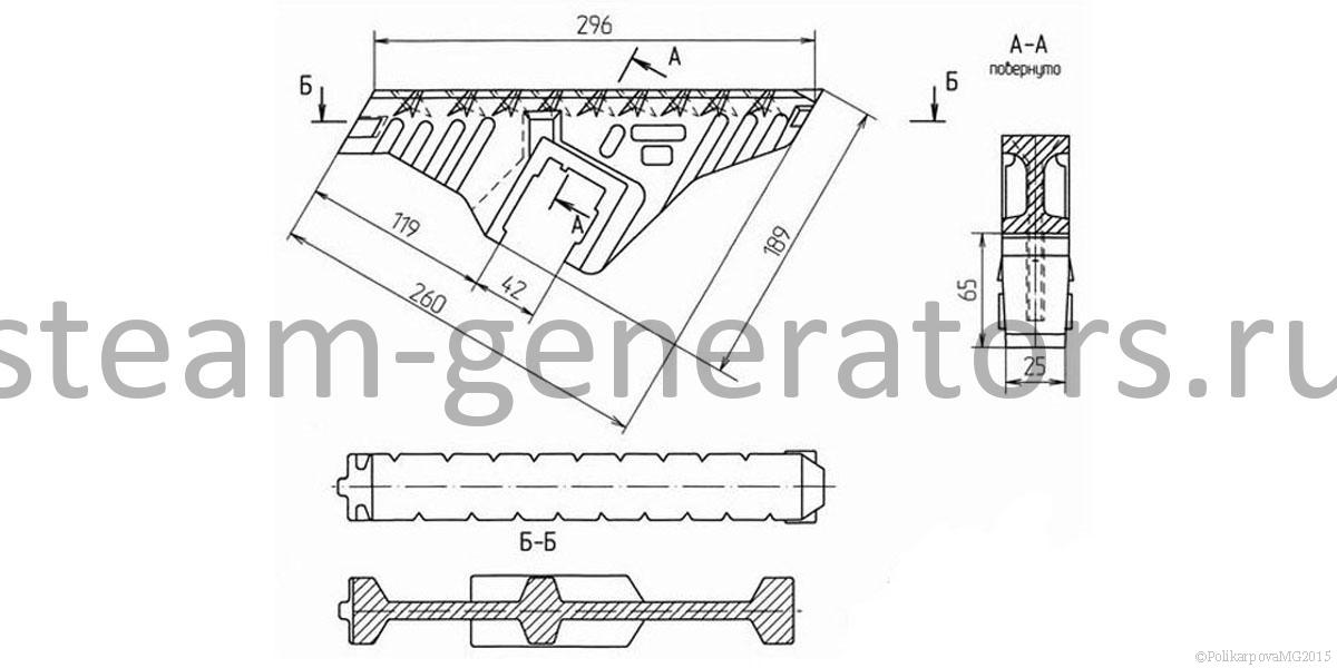 Колосник крайний левый Т 328.01.03.00.001 устанавливается в механические топки ТЛЗМ с движущимся ленточным колосниковым полотном, применяется с котлами КВр, КЕ, ДКВр.