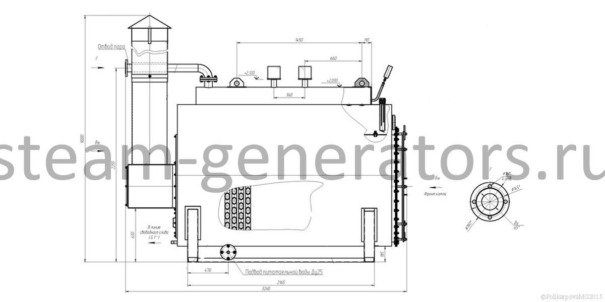 Угольный парогенератор 300 кг/ч - промышленный парогенератор высокого давления, паропроизводительностью 300 кг/час, давлением 0,3 - 0,8 МПа (8,0 кгс/см2) и температурой пара до 170 °С. Цена указана в полной комплектации.