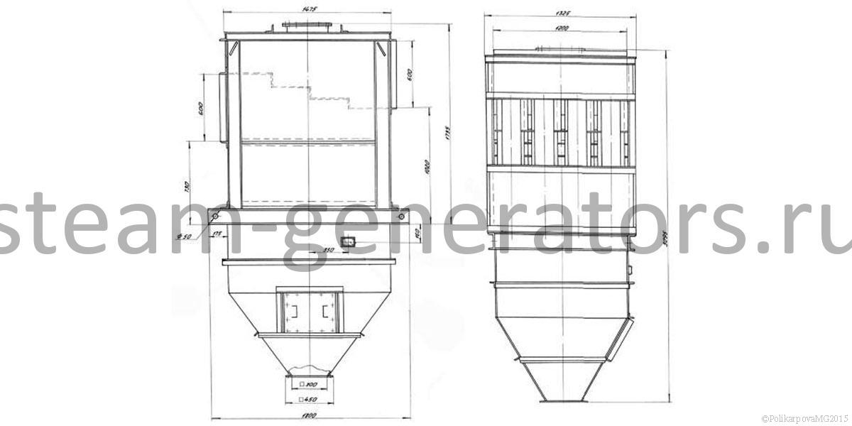 Батарейный циклон ЦБ 16 монтируется за котлом перед дымососом.