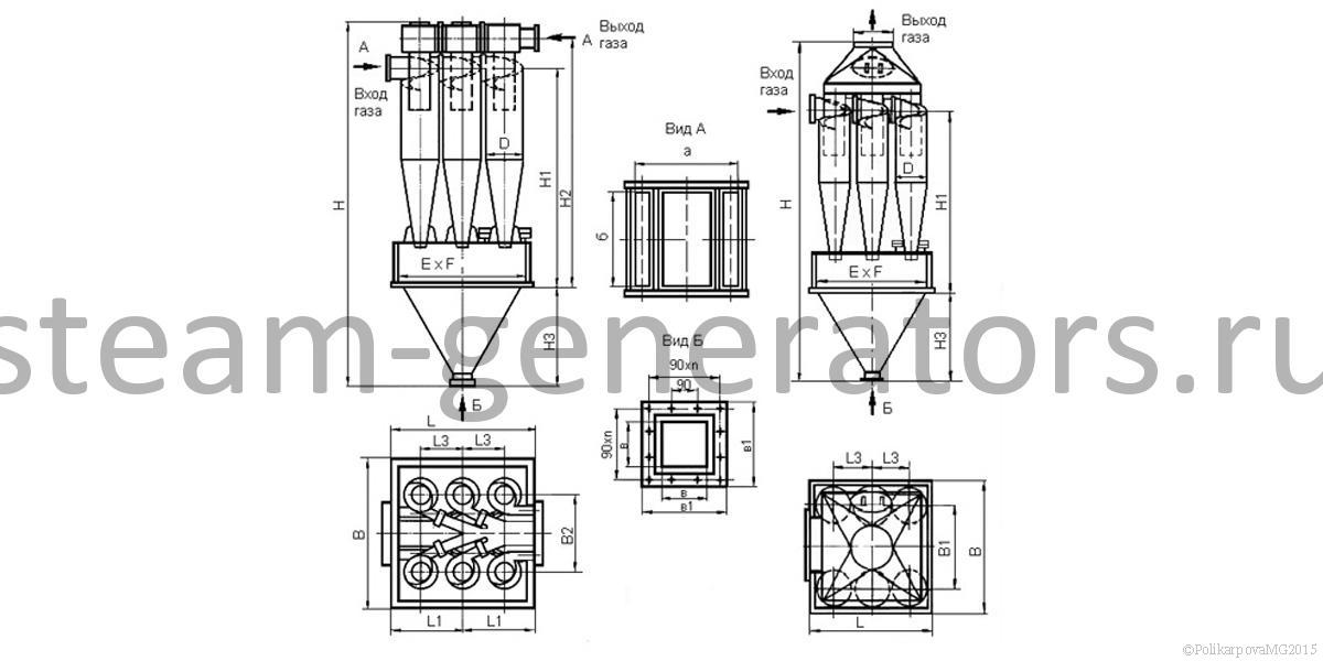 | Циклон ЦН 15-600-6УП | 2075 | 2075 | 5032 | 2870 | 3343 | 1460 | 600 | 350 | 1900 |