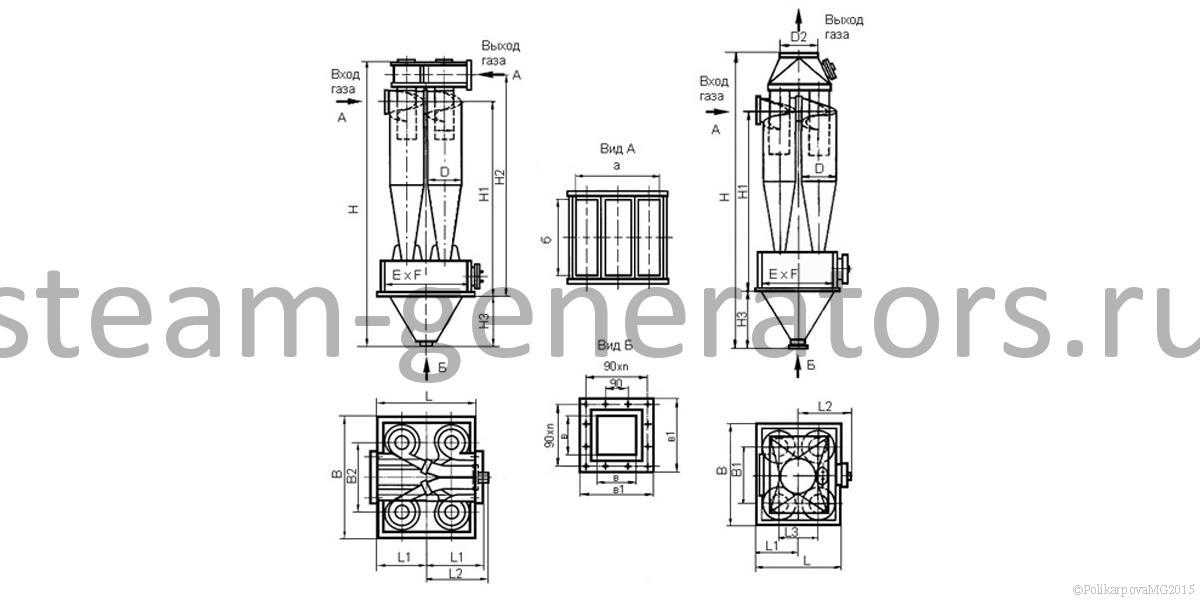 | Циклон ЦН 15-800-4УП | 1705 | 2070 | 6304 | 4015 | 4649 | 1360 | 800 | 470 | 1500 |