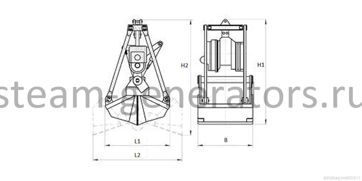 Грейфер угольный предсталяет собой грузозахватное крановое устройство, используемое для выполнения погрузочно-разгрузочных и транспортных работ в угольной котельной.