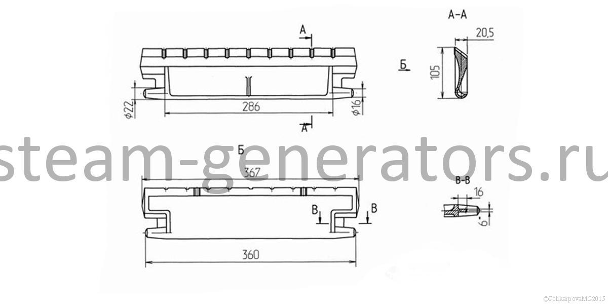 Колосник крайний правый Т 328.01.03.00.002 устанавливается в механические топки ТЛЗМ с движущимся ленточным колосниковым полотном, применяется с котлами КВр, КЕ, ДКВр.