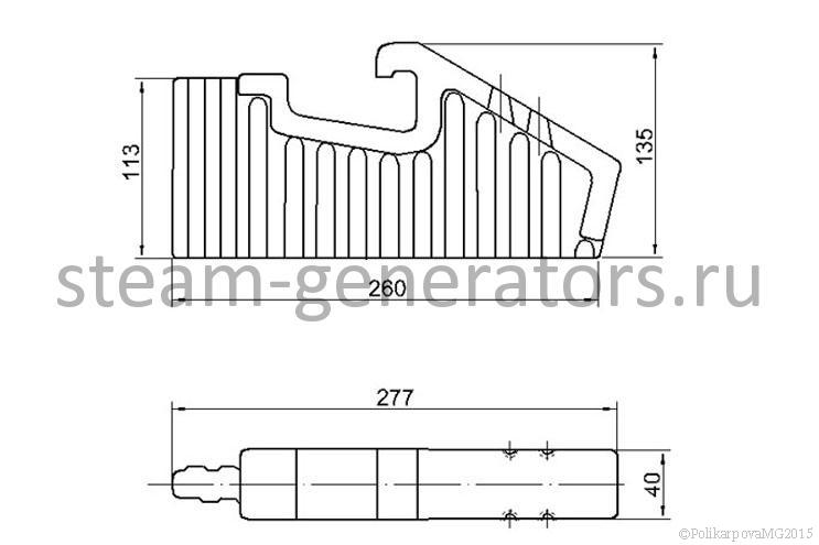 Колосник 6.30.26 (00.1603.056) узкий устанавливается в механические топки ТЧЗМ с движущимся колосниковым полотном чешуйчатого типа, применяется с котлами КЕ, КВТС.