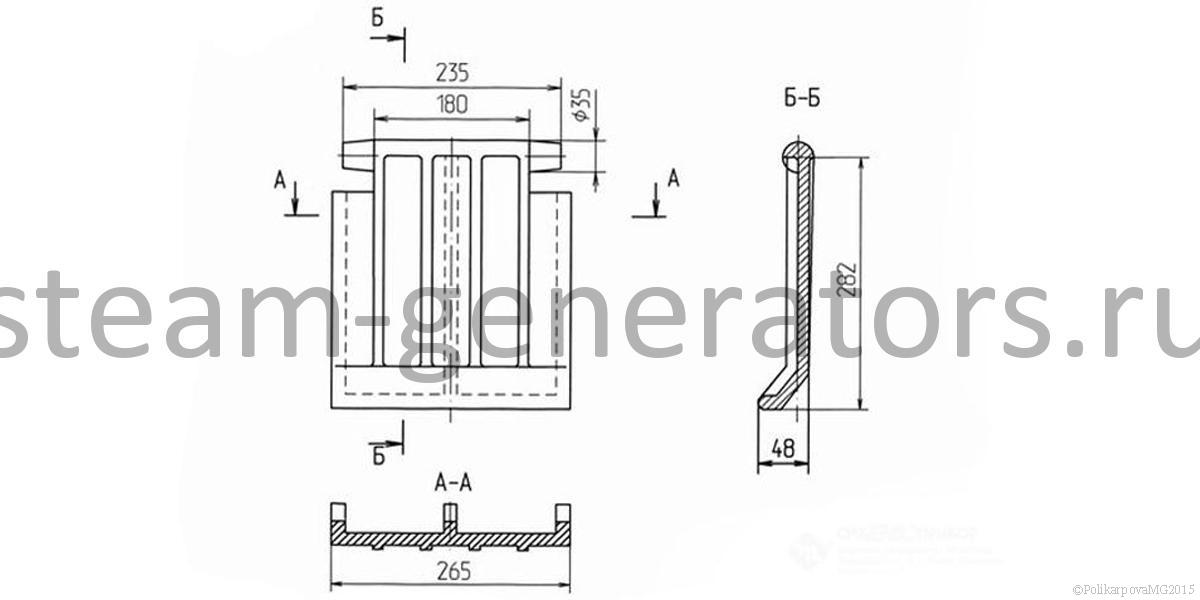 Материал используемый для изготовления колосника (шлакоснимателя) 00.1602.010 (Т 22.00.007 А) является литейный чугун. Колосник поддерживает слой горящего топлива, температура интенсивного горения может достигать и даже превышать 1000°С.
