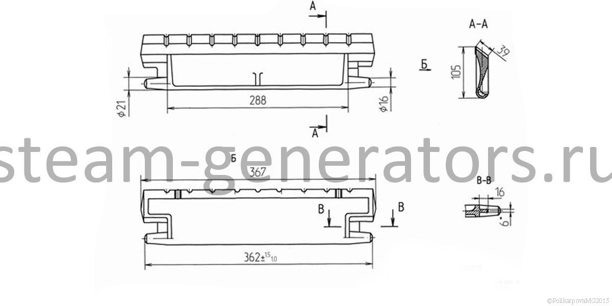Материал используемый для изготовления колосника Т 220.13.001 (00.1603.038) является литейный чугун. Колосник Т 220.13.001 (00.1603.038) поддерживает слой горящего топлива, температура интенсивного горения может достигать и даже превышать 1000 °С.