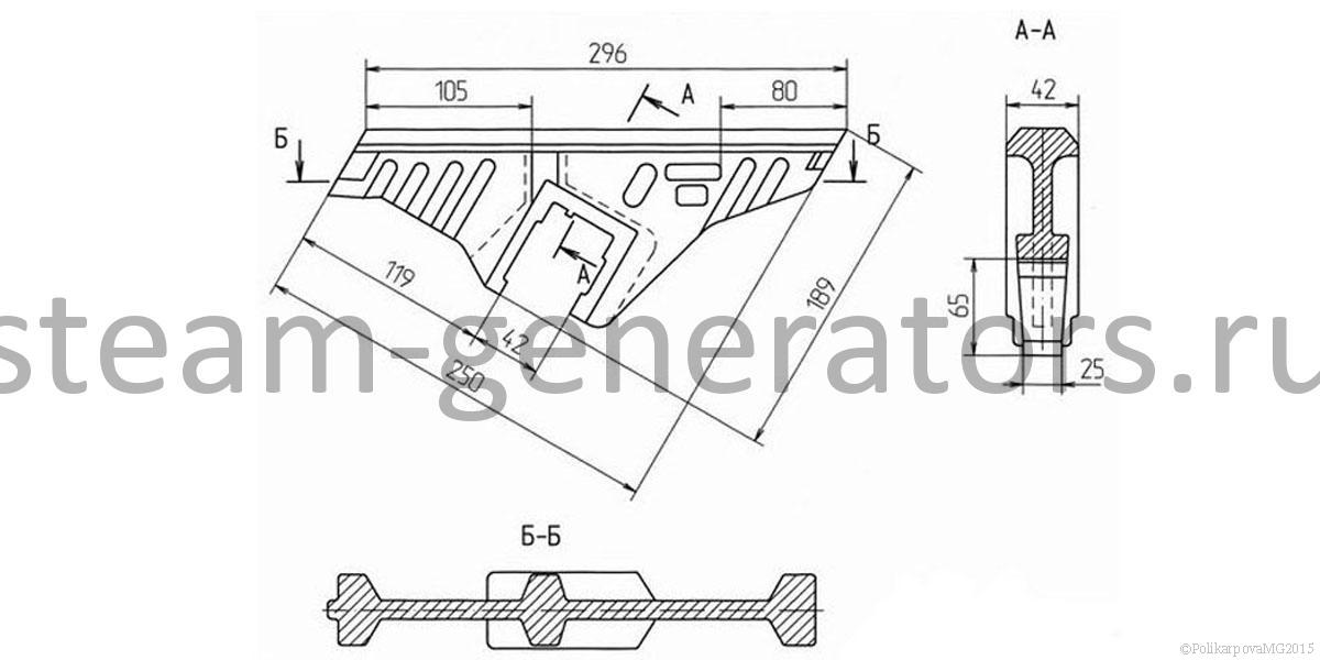 Колосник 390x250 устанавливается в слоевых топках твердотопливных водогрейных и паровых котлов, для поддержания в топке устойчивый слой горящего топлива.