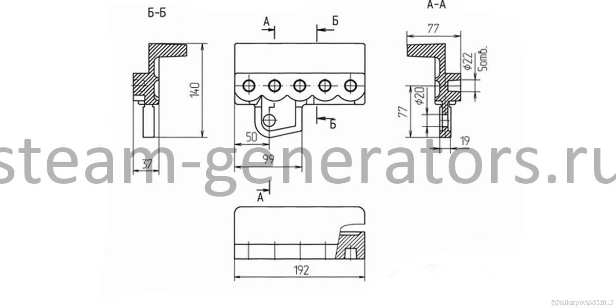 Держатель средний 6.30.2 (6 отверстий) (00.7003.003) устанавливается в механические топки ТЧЗМ с движущимся колосниковым полотном чешуйчатого типа, применяется с котлами КЕ, КВТС.
