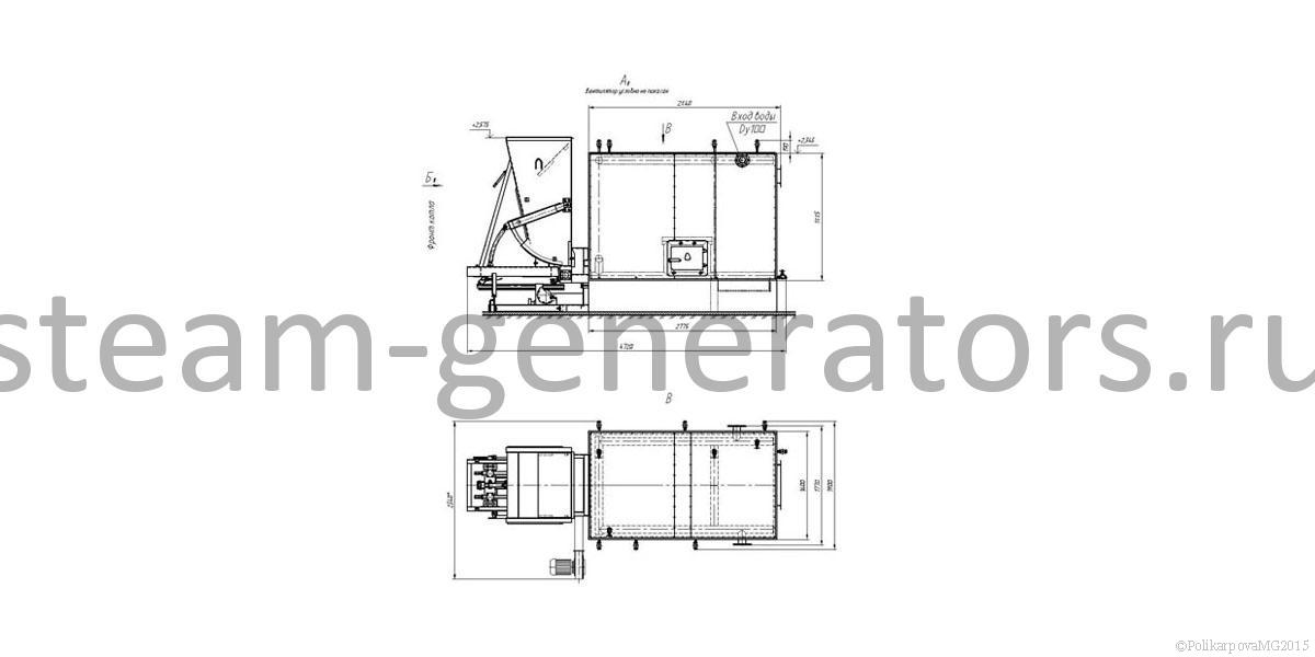 Котел поставляется максимальной монтажной готовности. Котельный блок устанавливается на топку ТШПМ, подключается теплоноситель, КИП и запорная арматура, сверху подводится газоход. Для отвода дымовых газов к газоходу подсоединяется дымосос. Воздух подается в топочную камеру через распределительную решетку топки вентилятором.