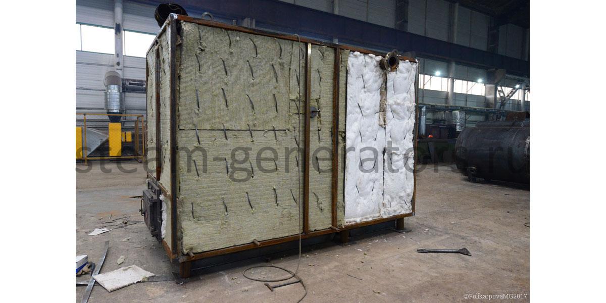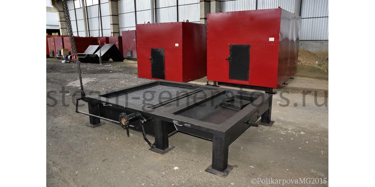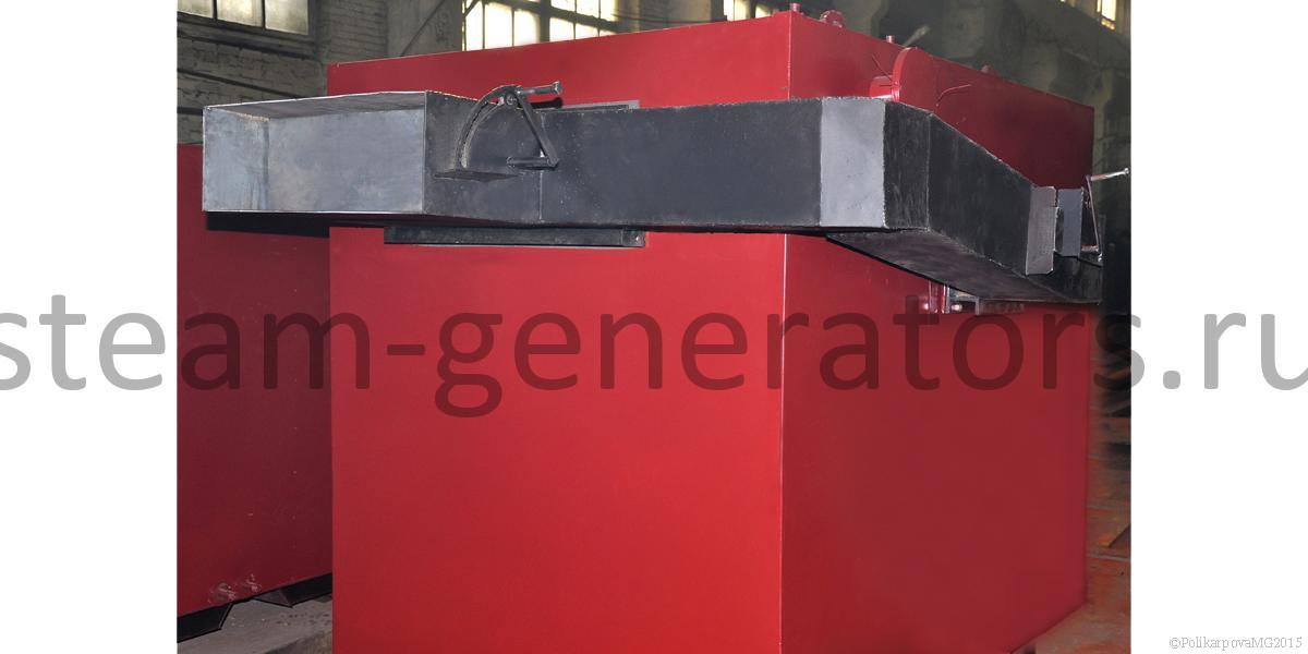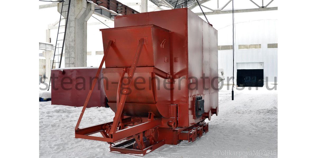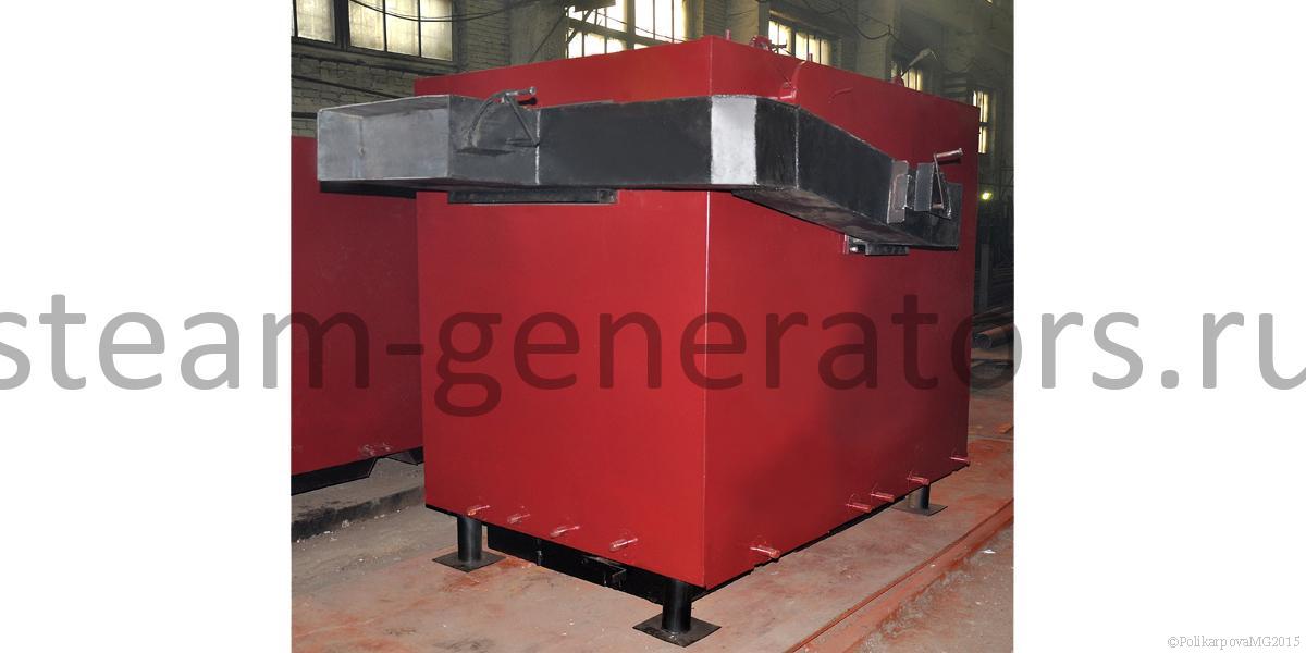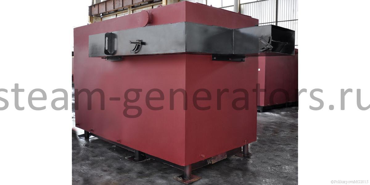 Гладкотрубные, горизонтальной компоновки. Впереди располагается колосниковая топка с зольником, сзади двухходовой конвективный блок. Топочное пространство выполнено газоплотным. Газоплотность топки обеспечивается при помощи вварки стальной полосы между охлаждаемых труб котлов и исключает присосы холодного воздуха в топочную камеру и зону горения топлива. Воздух для горения топлива поступает исключительно снизу из зольника. Снаружи котлы имеют каркас с установленной на них теплоизоляцией и обшитые стальными листами. Изоляция котлов обеспечивает температуру наружной стенки не более 30 °С, выполняется из плит ПТЭ, устанавливаемых на трубную систему. Подвод и отвод воды выполнен сверху котлов, выход газов также производится сверху. Для растопки котлов и вывода его в режим самотяги, сверху сбоку котлов устанавливается обводной газоход.