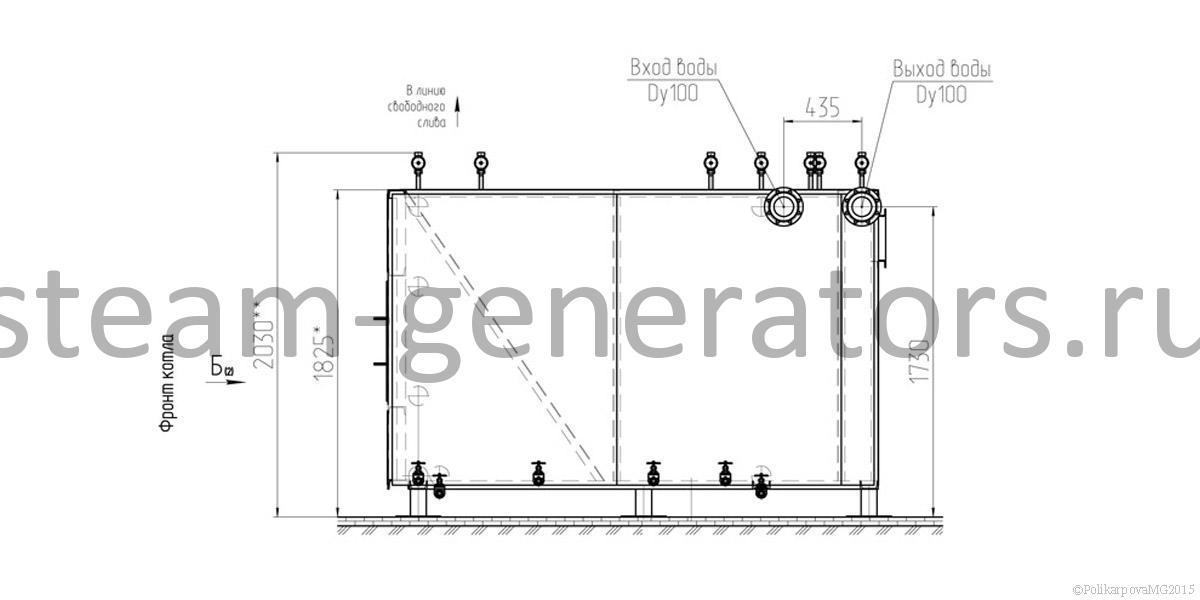 Котел поставляется максимальной монтажной готовности. Котельный блок устанавливается на ровную поверхность, подключается теплоноситель, горелка, настраивается автоматика, КИП и запорная арматура, сверху подводится газоход. Котлы с импортными горелками работают под наддувом. С некоторыми отечественными горелками вам может потребоваться установка дымососа.