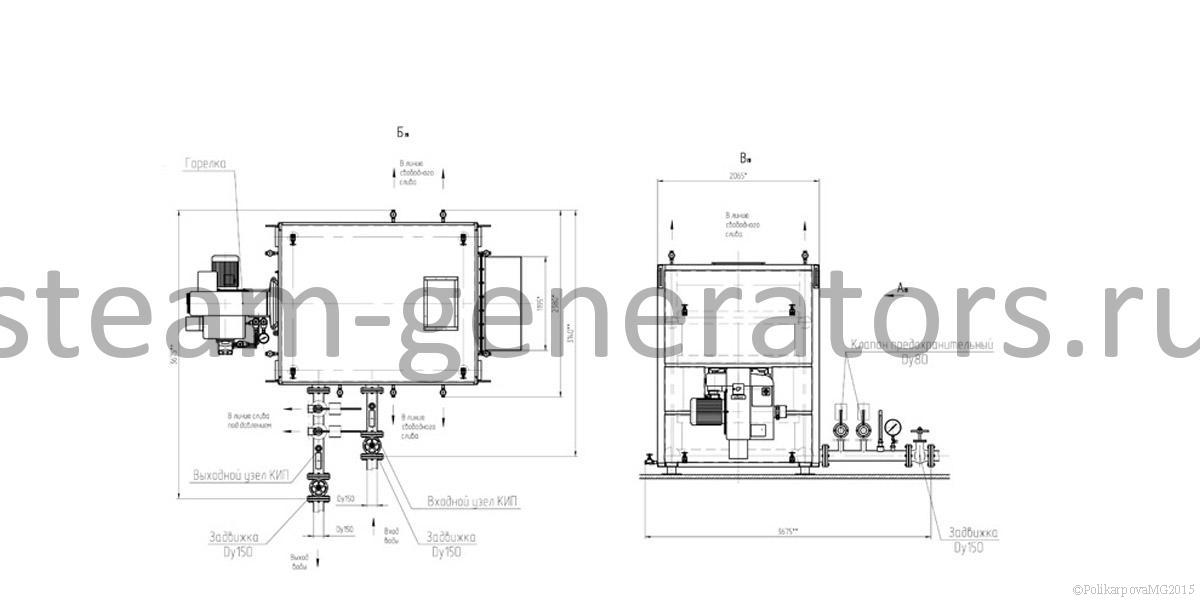 Котел поставляется максимальной монтажной готовности. Котельный блок устанавливается на ровную поверхность, подключается теплоноситель, горелка, настраивается автоматика, КИП и запорная арматура, сверху подводится газоход. Котлы с импортными горелками работают под наддувом. С некоторыми отечественными горелками вам может потребоваться установка дымососа.