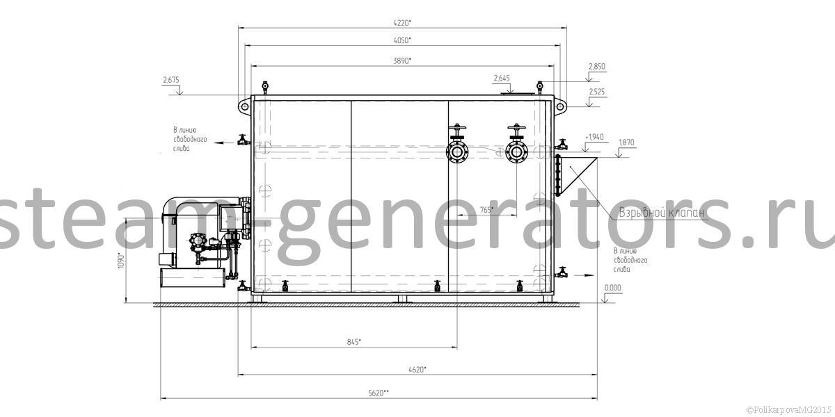 Водогрейный газовый котел 2 МВт имеет гладкотрубную трубную систему и незначительный водяной объем, он безопасен в эксплуатации, взрывоопасность котла в любых аварийных ситуациях отсутствует. Сзади котел оснащен взрывным клапаном.