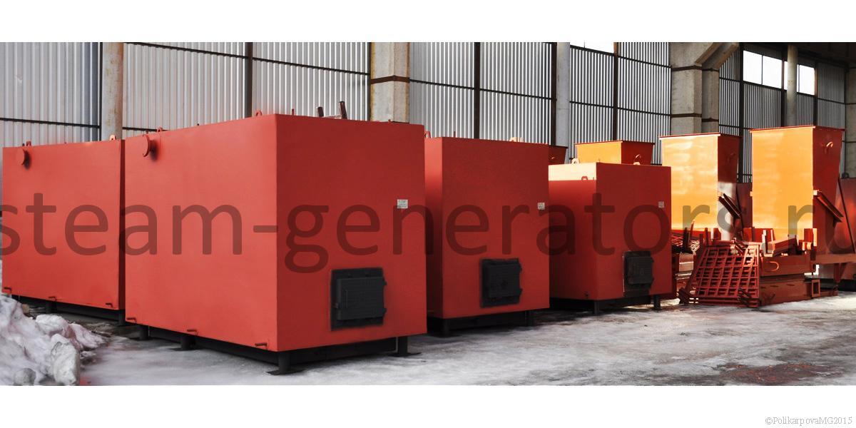 Гладкотрубные, горизонтальной компоновки. В передней части котлов имеется ручная колосниковая топка с зольником, в задней части двухходовой конвективный пакет. Топочное пространство газоплотное. Газоплотность топки обеспечивается вваркой стальной полосы между охлаждаемых труб котлов и исключает присосы холодного воздуха в топочную камеру и зону горения топлива. Воздух для горения топлива поступает снизу из зольника. Водогрейные твердотопливные котлы имеют каркас, на котором установлена теплоизоляция. Изоляция котлов обеспечивает температуру наружной стенки не более 30 °С, выполняется из плит ПТЭ, устанавливаемых на трубную систему. Водогрейные твердотопливные котлы обшиваются металлическими листами.