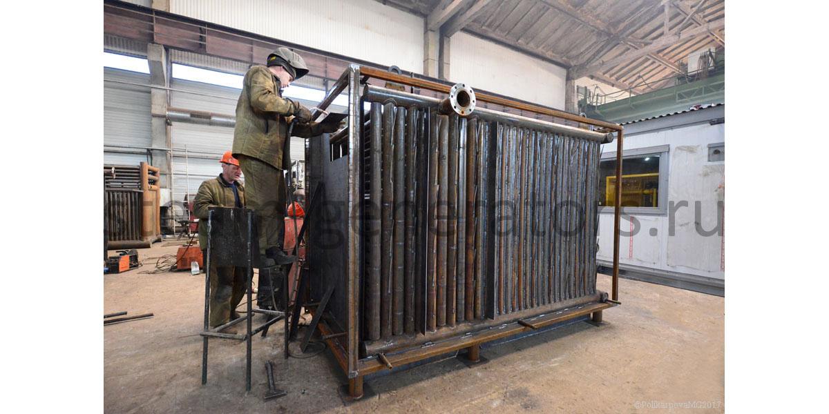Конвективные пакеты выполняются в виде плотных регистров и вставляются в котлах друг напротив друга в шахматном порядке. Устроенная таким образом поверхность нагрева имеет обширную полезную площадь, участвующую в передаче тепла, и максимальный коэффициент теплопередачи, горячие дымовые газы на выходе из котлов охлаждаются до температуры 160-180 °С, в зависимости от вида топлива. Кроме того, организация данным образом трубной системы котлов обеспечивает его компактность.
