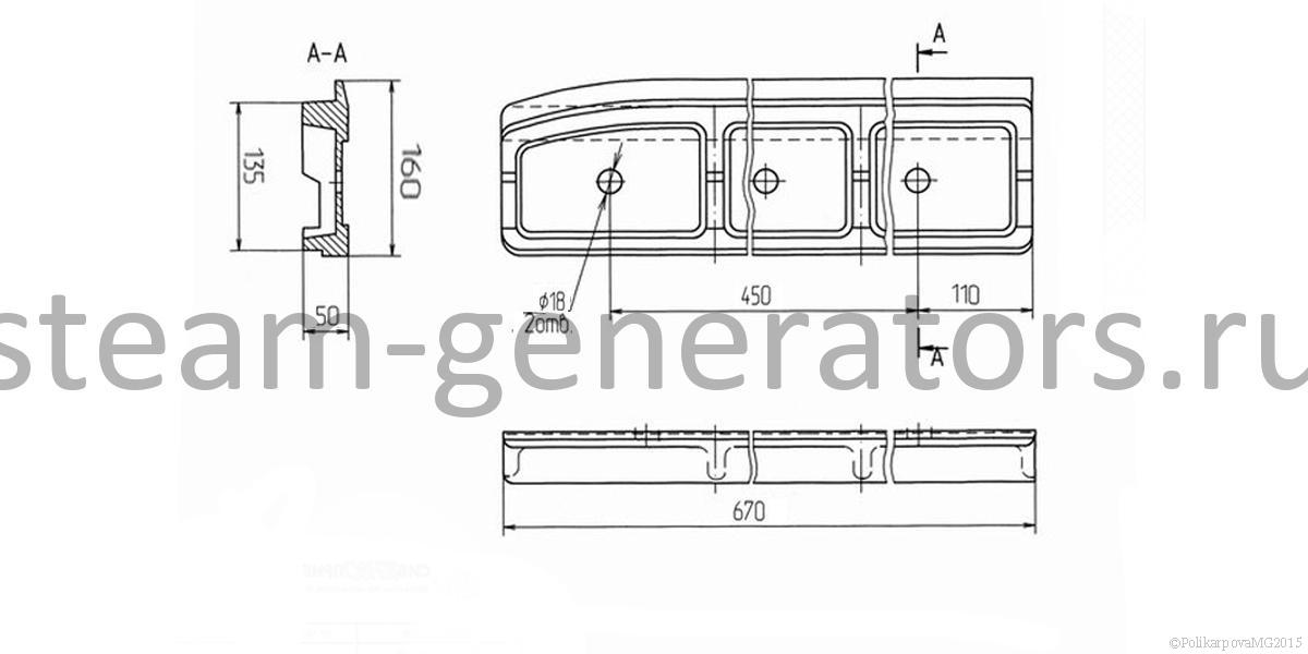Колосник 500x200 устанавливается в слоевых топках твердотопливных водогрейных и паровых котлов, для поддержания в топке устойчивый слой горящего топлива.