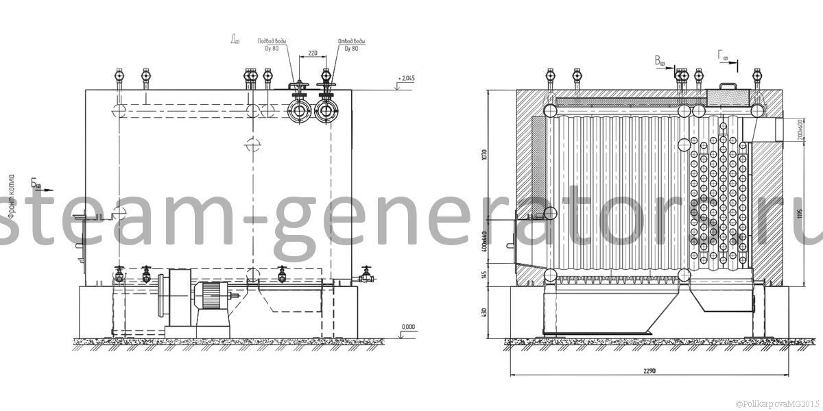 Водогрейный котел 400 кВт поставляется в комплекте с вентилятором поддува, колосниками, топочной дверкой, клапанами предохранительными, вентилями, манометрами, термометрами, паспортом котла и инструкцией по эксплуатации котла.