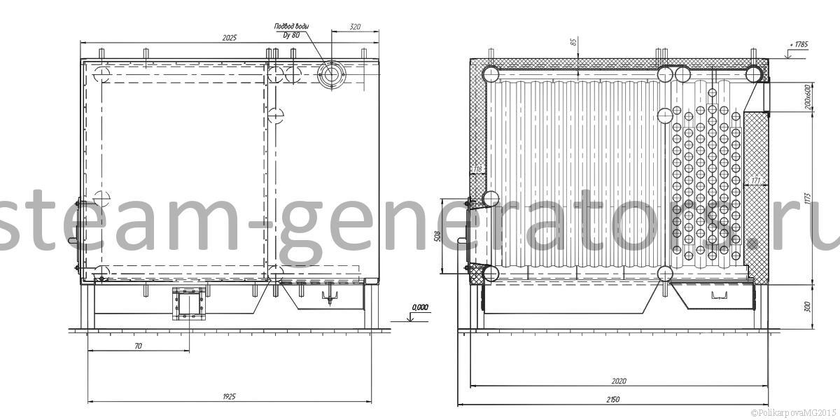 Конвективные пакеты выполняются в виде плотных регистров и вставляются в котле друг напротив друга в шахматном порядке. Устроенная таким образом поверхность нагрева имеет обширную полезную площадь, участвующую в передаче тепла, и максимальный коэффициент теплопередачи, горячие дымовые газы на выходе из котла охлаждаются до температуры 160-180 °С, в зависимости от вида топлива. Кроме того, организация данным образом трубной системы котла обеспечивает его компактность.