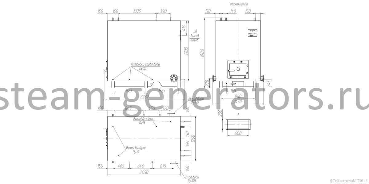 Водогрейный котел 630 кВт поставляется в комплекте с вентилятором поддува, колосниками, топочной дверкой, клапанами предохранительными, вентилями, манометрами, термометрами, паспортом котла и инструкцией по эксплуатации котла.