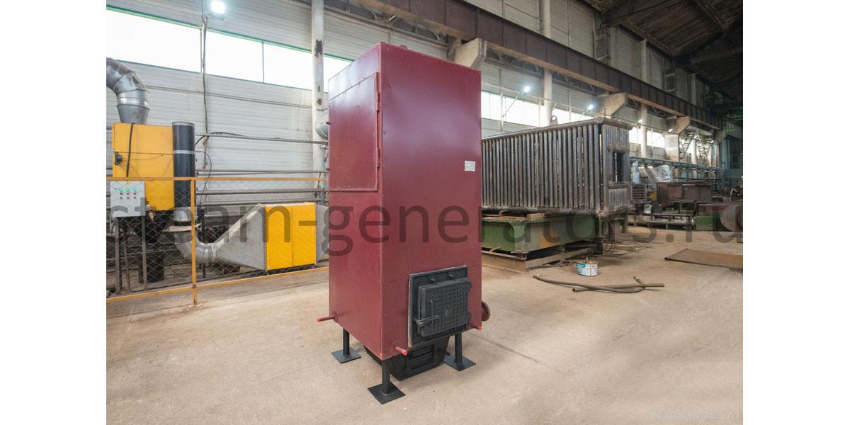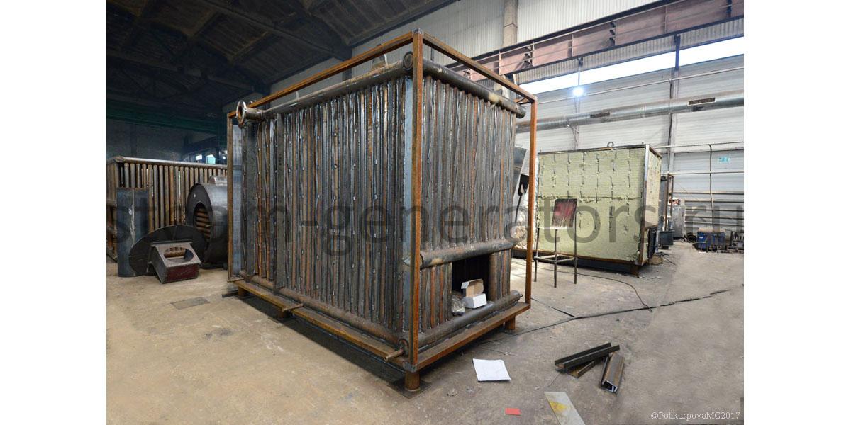 Гладкотрубный, горизонтальной компоновки. В передней части котла имеется ручная колосниковая топка с зольником, в задней части двухходовой конвективный пакет. Топочное пространство газоплотное. Газоплотность топки обеспечивается вваркой стальной полосы между охлаждаемых труб котла и исключает присосы холодного воздуха в топочную камеру и зону горения топлива. Воздух для горения топлива поступает снизу из зольника. Водогрейный котел 630 кВт имеет каркас, на котором установлена теплоизоляция. Изоляция котла обеспечивает температуру наружной стенки не более 30 °С, выполняется из плит ПТЭ, устанавливаемых на трубную систему. Водогрейный котел обшивается металлическими листами.